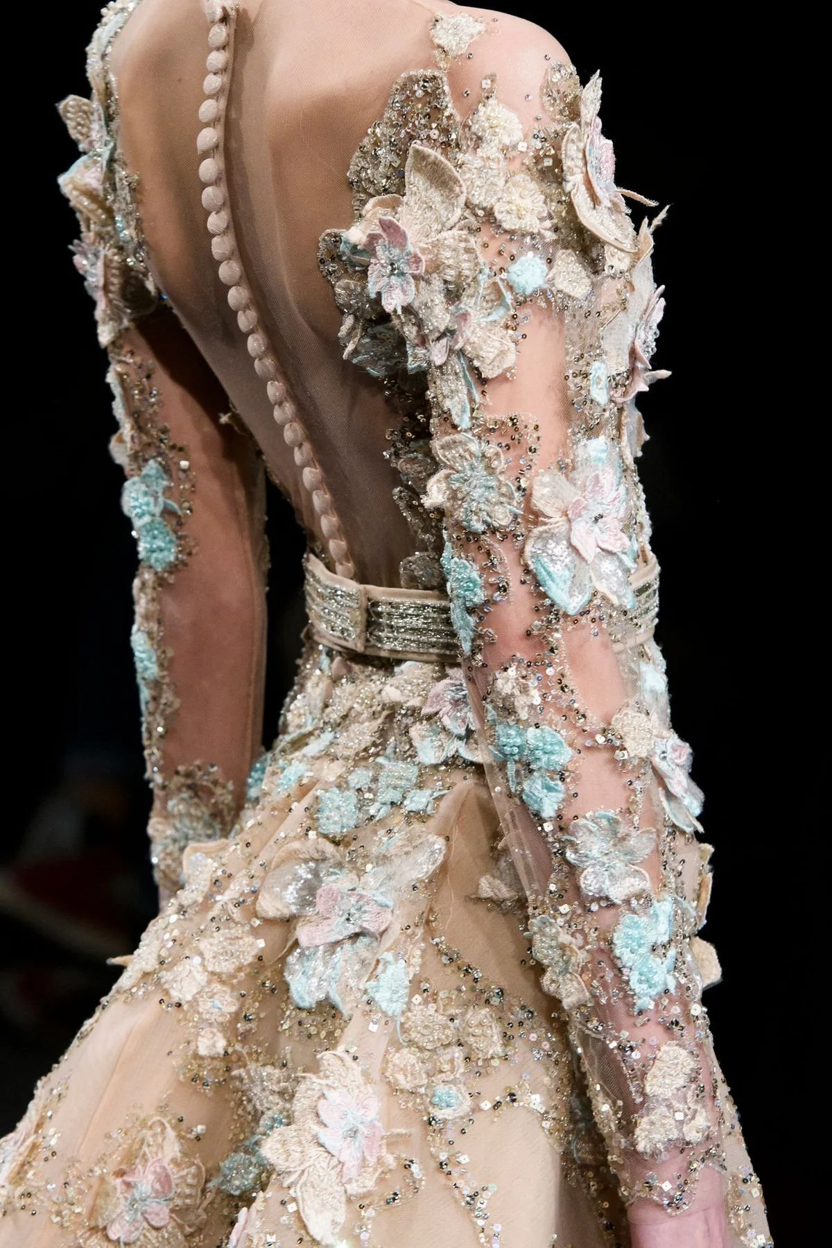 According to the article written by Luke Leitch for Vogue the exhibit will be comprised of fashion history spanning 400 years from the Elizabethan Era forward. The reason for the title “Sleeping Beauties…” is some of the older garments have become incredibly delicate with age, such as the cloud motif Ball Gown below created in 1877 by Charles Frederick Worth. Many will be on display to the public for the first time and the exhibition will use technologies like, AI, CGI, video animation, and light projection to help visualize some of the more delicate pieces.
